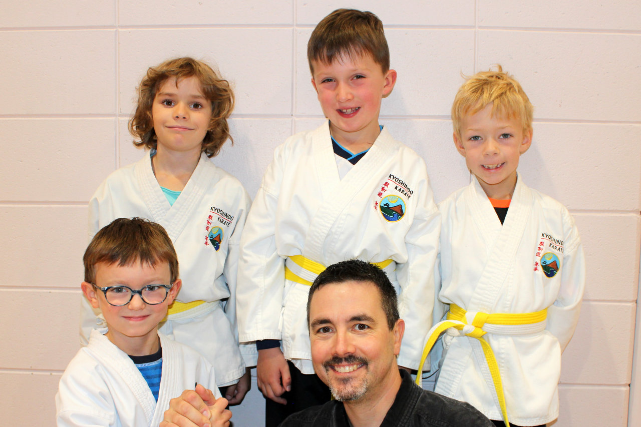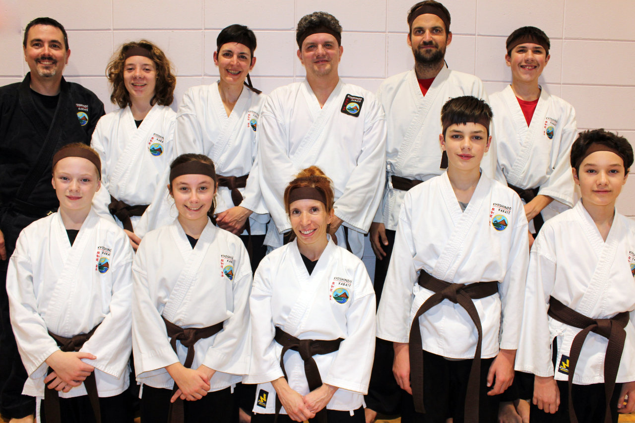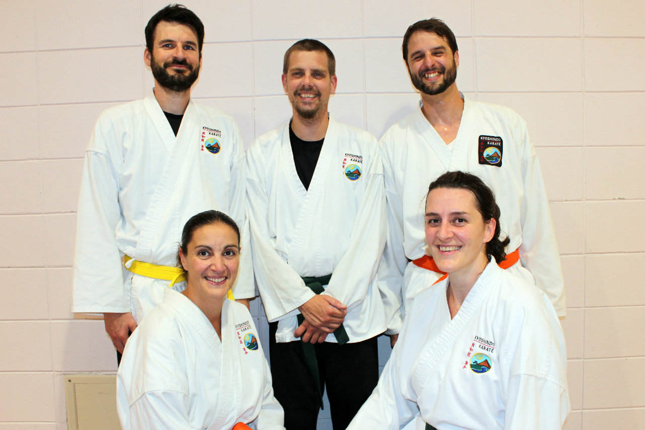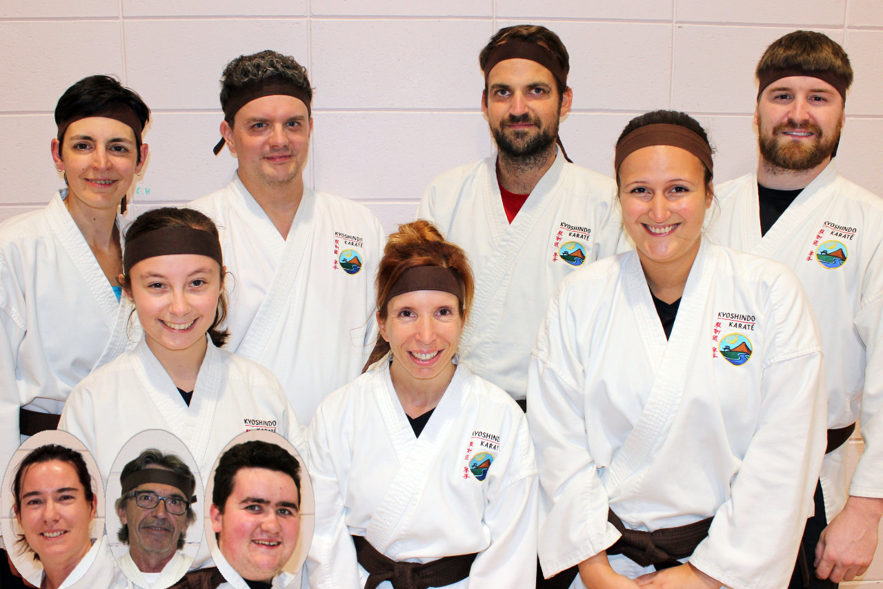 Parents-Enfants Ceintures oranges à brunes Groupe de Michelle, assistée de Gilles, Claude et François
