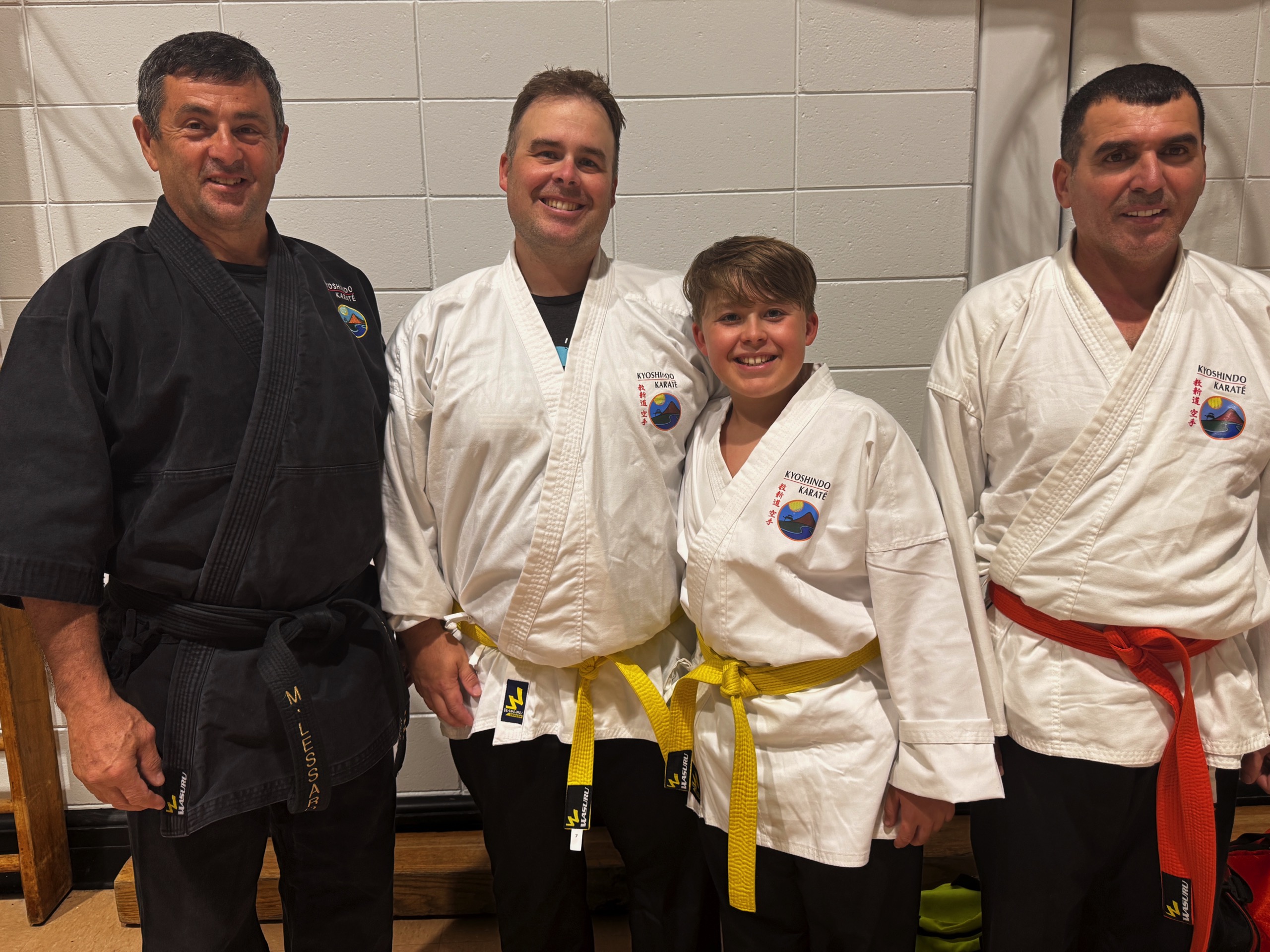 CEINTURES BRUNES : De gauche à droite, derrière : Félix Tanguay, Mathieu Boutin, Charles Dinel, Henri Boutin.