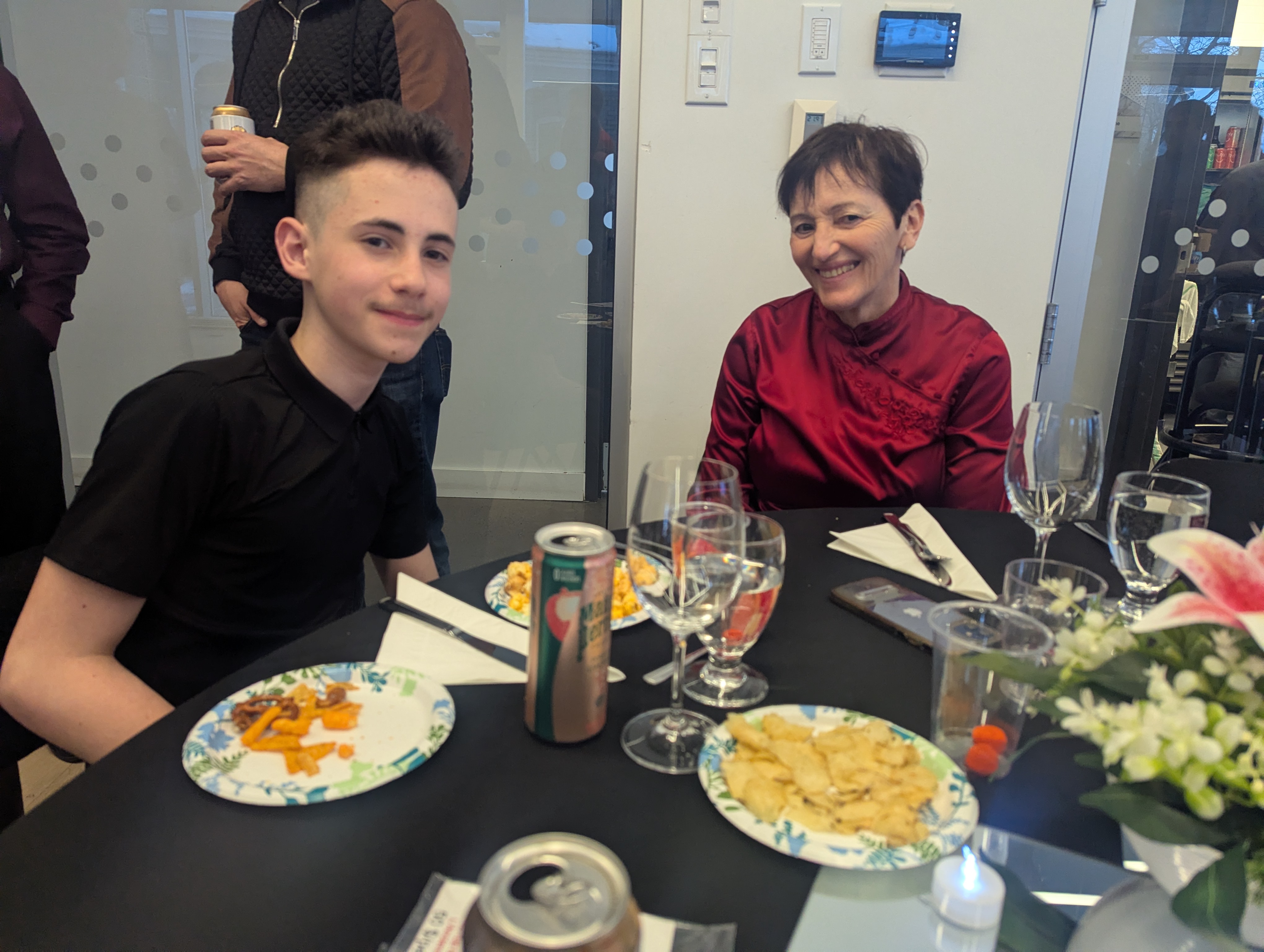 Johanne, son conjoint, Octave, sa copine, Anna, Marc, Jacob et ses parents