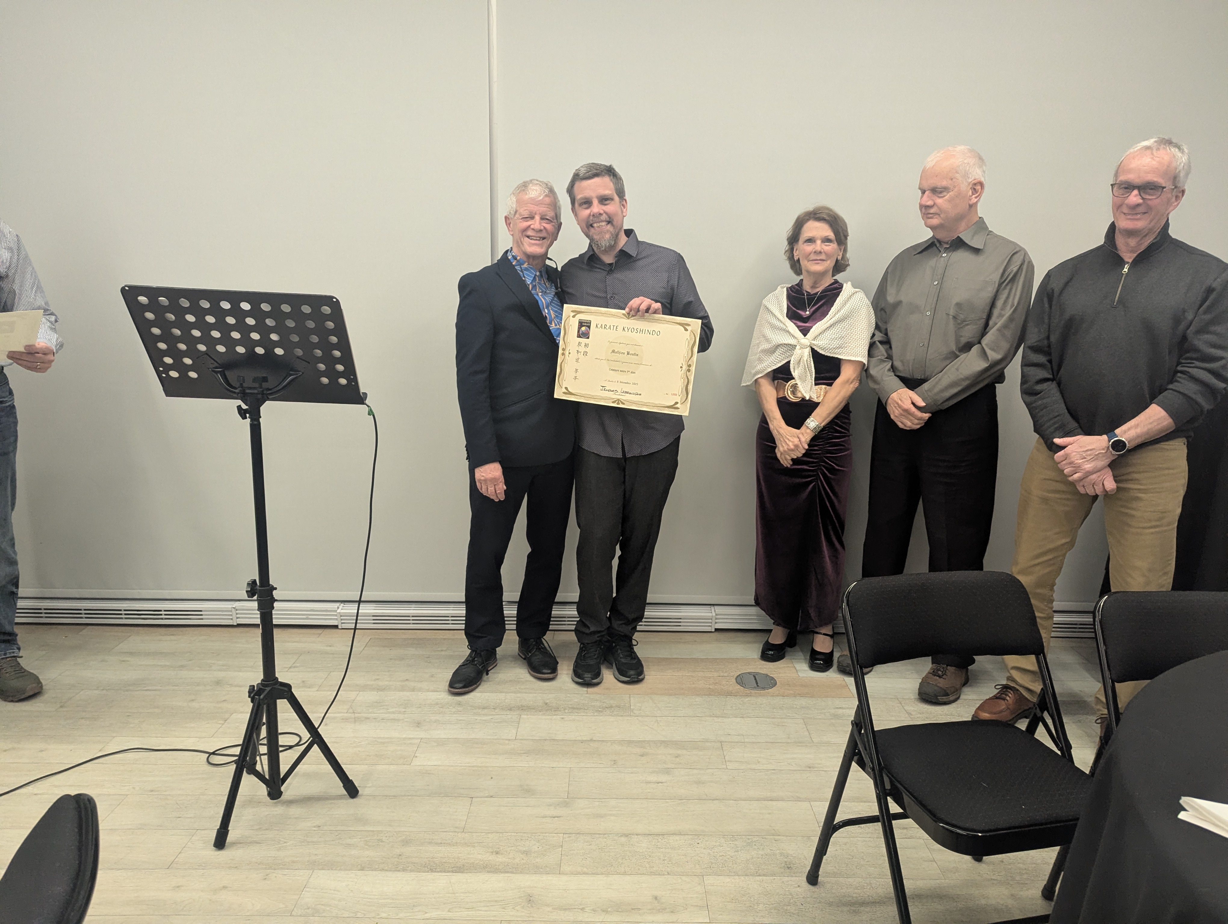 Jocelyn reçoit son diplôme de ceinture noire shodan