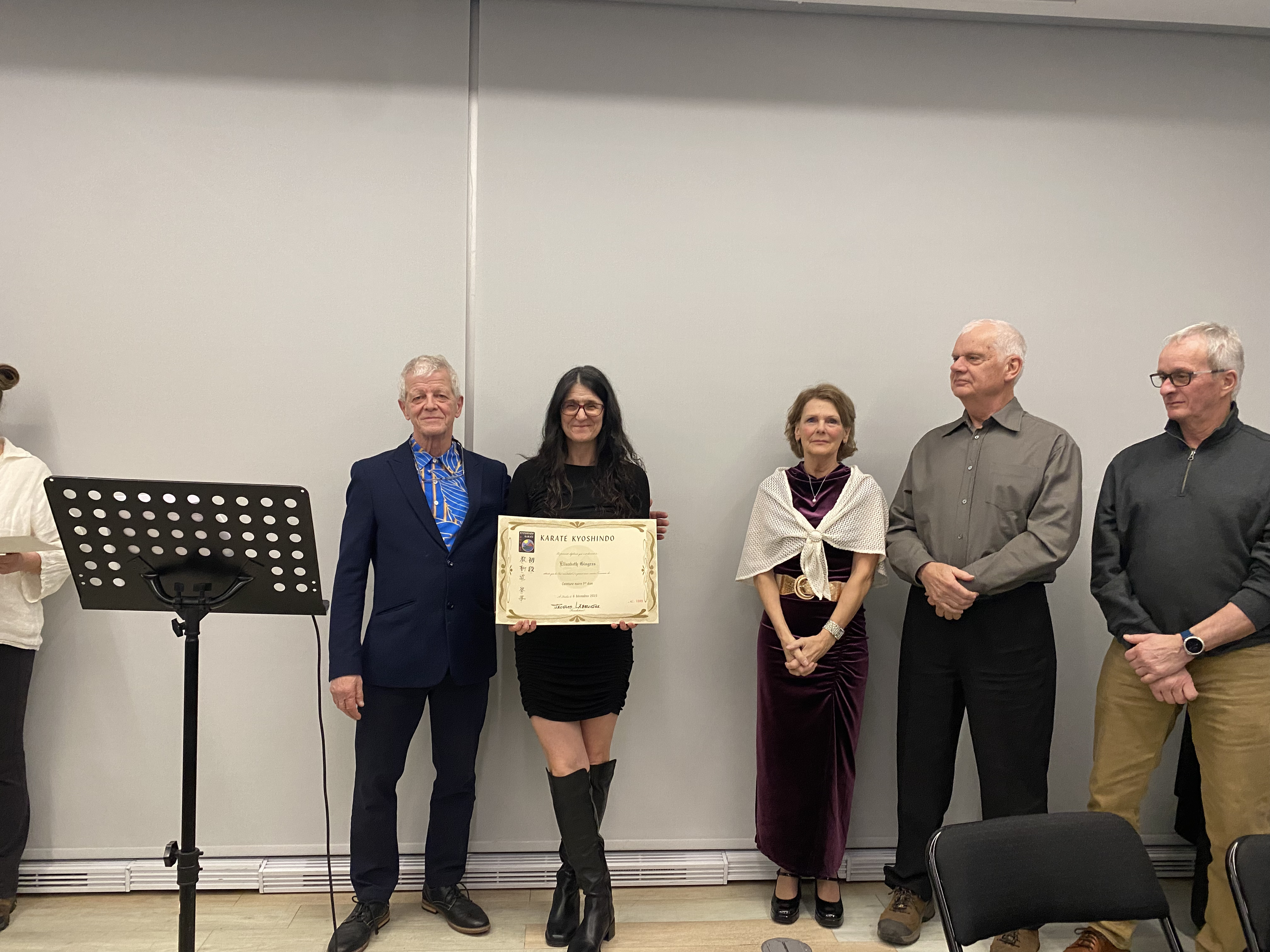 Élisabeth reçoit son diplôme de ceinture noire shodan
